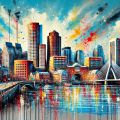 Vibrant Watercolor Skyline of Boston: A Modern Artistic Interpretation