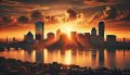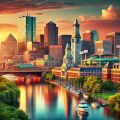 Boston's Skyline at Sunrise: A Serene, Colorful Digital Masterpiece