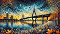 Autumnal Symphony at Boston’s Zakim Bridge: A Klimt-Inspired Vista