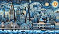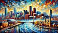Vivid Impasto Oil Painting of Boston's Iconic Cityscape