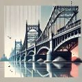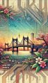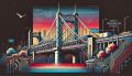 Vibrant Fusion of Technology and Architecture in Boston's Harvard Bridge Illustration