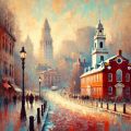 Winter Whispers in Boston: A Painting of Snow-Dusted Cityscapes