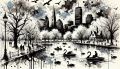 Abstract Expressionist Ink Wash of Boston Common in Winter