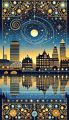 Enigmatic Night in Boston: A Gustav Klimt-Inspired Skyline