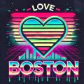 "Love Boston: A Vibrant Retro 90s Vaporwave Tribute Art"