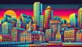 Colorful, Geometric Abstraction of the Boston Skyline with Artistic Flair