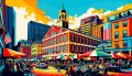 Vibrant Pop Art Representation of Boston's Faneuil Hall Marketplace