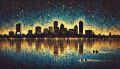 Golden Lights of Boston: A Minimalist Nighttime Skyline Reflection