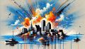 Explosive Color Burst Over Boston Harbor: A Neo-Expressionist View