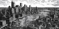 Dramatic Woodcut Style Panorama of Boston's Iconic Skyline
