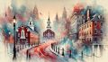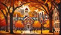Autumnal Splendor in a Watercolor Boston Cityscape