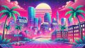 Retro-Futuristic Vision of Boston with Vibrant Vaporwave Influence