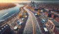 Boston's Charles River Dam Bridge Interfused with Circuit Board Artistry