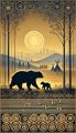 Golden Sunrise Over Boston with Stylized Bear and Cub Silhouette