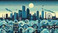 Neon Waves in Boston: A Ukiyo-e Inspired Cityscape