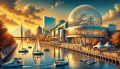 Serene Sunset Over Boston Harbor: A Vibrant Artistic Rendering