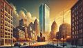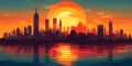 Bold Abstract Interpretation of Boston Skyline at Sunset
