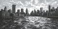 Stirring Image of Boston Skyline Rendered in Dramatic Woodcut Style