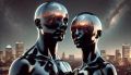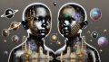 Cosmic Reflections: Surrealistic Portrait of Humanoid Siblings in Cubism