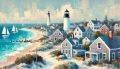 Coastal Charm: Nantucket Lighthouse and Village in Palette Knife Art