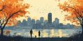 Autumn Stroll through Boston's Vibrant Skyline Illustrated