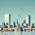 Enchanting Boston Skyline: A Nostalgic Vision in Realism and Gouache