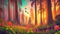 Enchanted Sunrise in Redwood National Park with Colorful Flora
