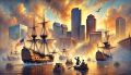 Surrealist Dawn at Boston Harbor with Historic Ships and Cloud Swirls