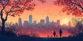 Autumn Sunset Over Boston: A Silhouetted Stroll Through Nature