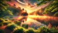 Sunrise Splendor Over Misty White Mountains and Serene River