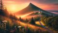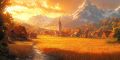 Enchanting Autumn Sunset Over a Medieval Village in the Mountains