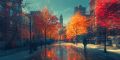 Autumn Embrace: Boston's Vibrant Landscape Reflected in Artful Brushstrokes