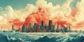 Enigmatic Illustration of Boston Skyline Emerging from Ocean Waves