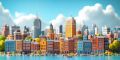 Playful Boston Skyline: A Childlike Interpretation in Vibrant Colors