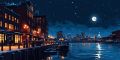 Neon Whispers in Boston: A Vivid Ukiyo-e Inspired Night Cityscape
