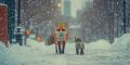 Winter Wanderers: A Fox Mother and Cub's Snowy Boston Stroll