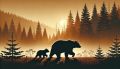 Dawn's Embrace: A Mother Bear and Cub in Silhouette against Sunrise