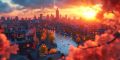 Boston’s Skyline Reimagined: A Surreal Blend of Color and Fantasy