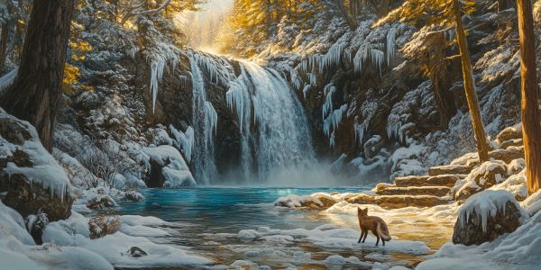Title: Winter's Dawn at Bash Bish Falls, A Tranquil Frozen Wonderland Photo ID: 66601