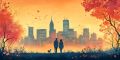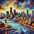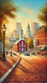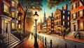 Autumnal Magic Over Boston Skyline in Colorful Impressionist Style