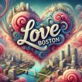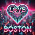 "Love Boston: A Vibrant Retro 90s Vaporwave Tribute Art"