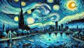 A Van Gogh-Inspired Vision of Boston's Skyline in Ocean Blues