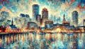 Expressionist Vision of Boston's Skyline Over Mystic River
