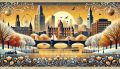 Sunrise Over Boston: A Winter Fusion with Gustav Klimt’s Touch