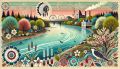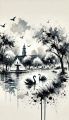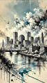 Abstract Ink Wash of Boston's Tranquil Parks and Urban Skylines