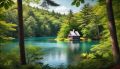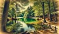 Walden Pond: An Artistic Reflection Amidst Lush Greenery