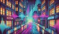 Futuristic Vision of Boston: Neon Lights and High-Tech Skyline