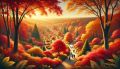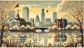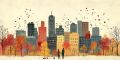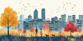 Autumn Stroll Through a Stylized Boston Cityscape with Dogs