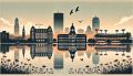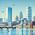 Serene Reflections: Minimalist Art View of Boston's Iconic Landmarks