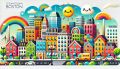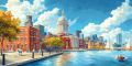 Colorful, Kid-Friendly Artistic Interpretation of Downtown Boston